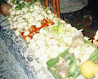 魚屋顔負けの鮮魚を揃え た高級レストランもあれば、 呼び込みも元気がいい、タ ベルナもあります。 | ||