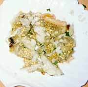 サントリーニ名産の 焼き白なすのサラダを 食べてみました。 とろりとして少し甘 みのある味がしました。 | ||